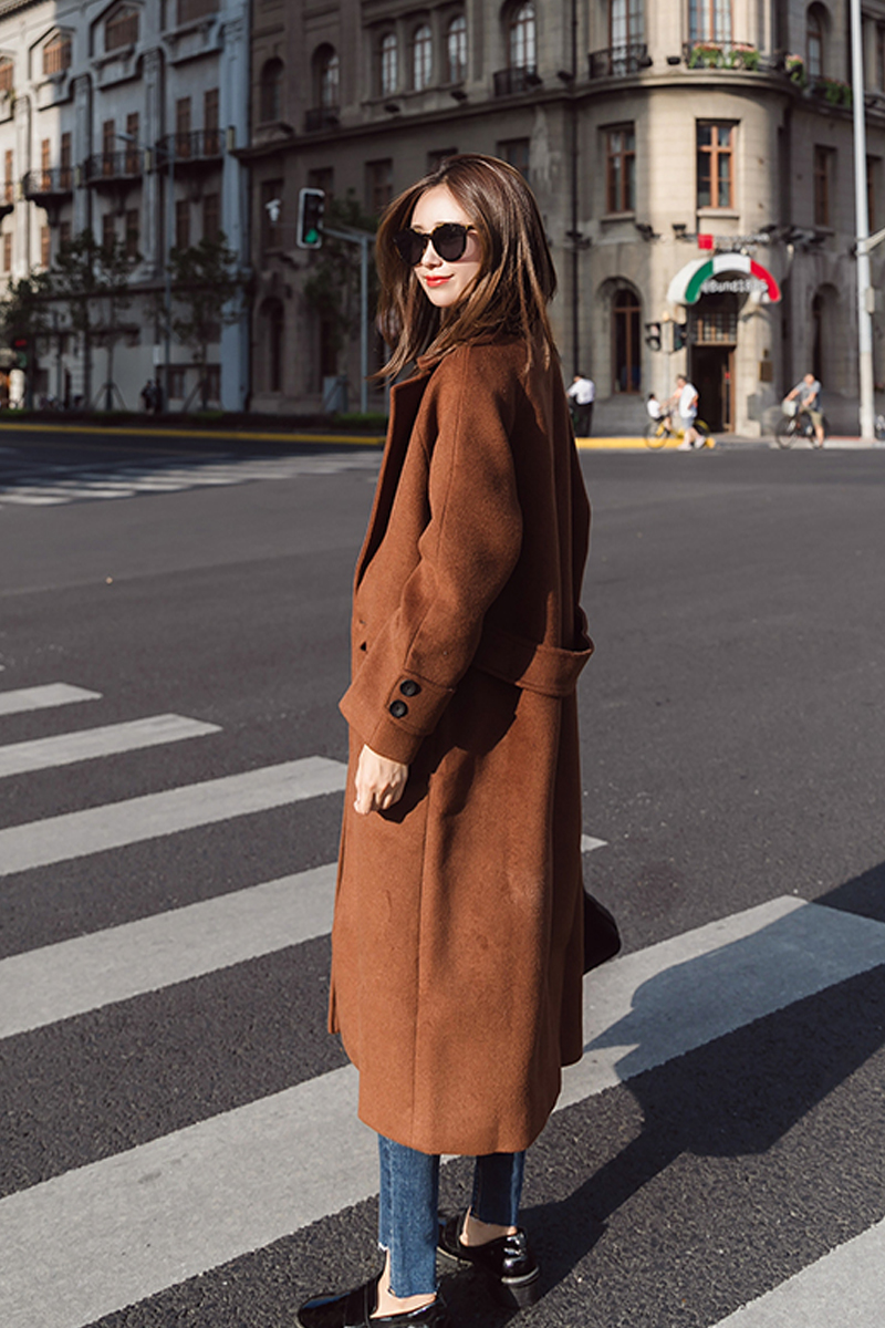 Woolen coat female long section new autumn and winter Korean version of Harajuku bf caramel short short woolen coat