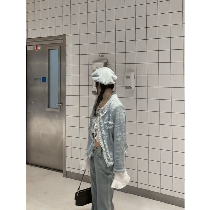 Product information:Color: blue Elasticity: inelastic Waist type: high waist Size: M,S,XL,L Pants type: tight pants Craft: embroidery/embroidery