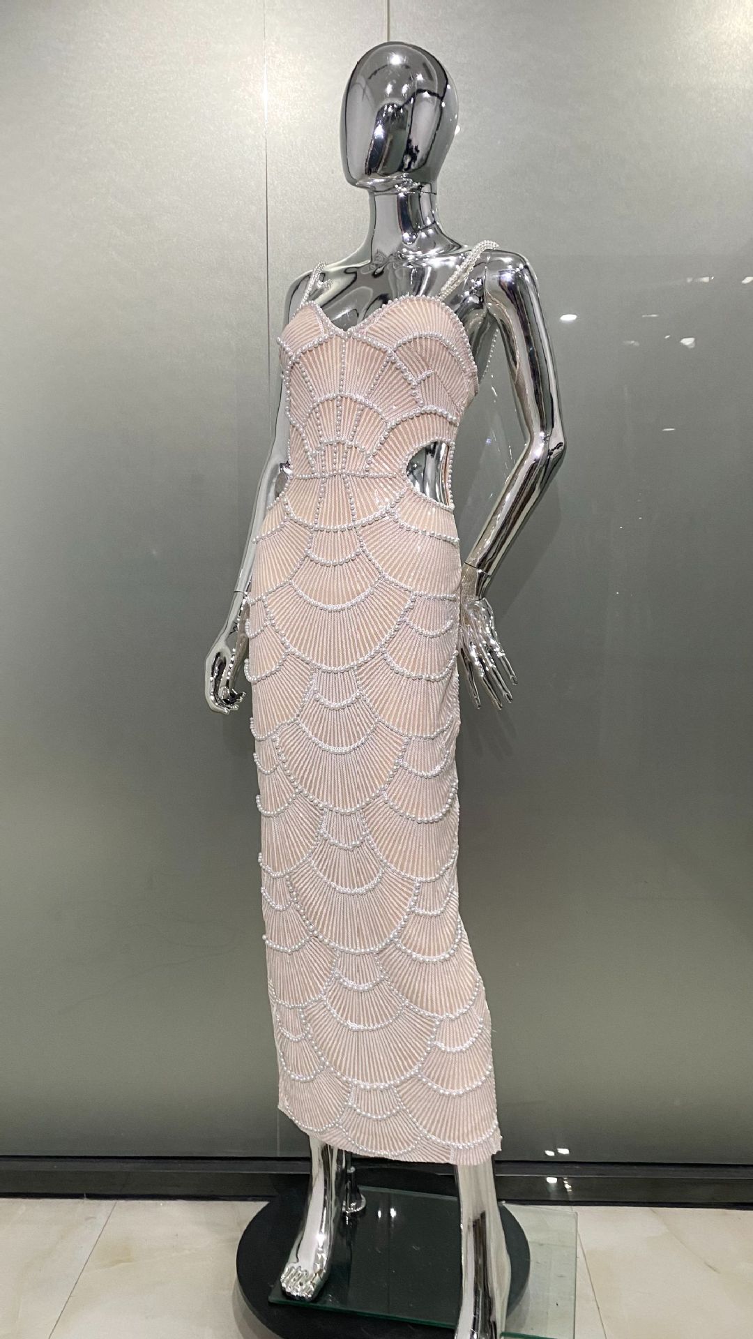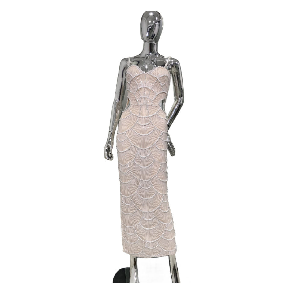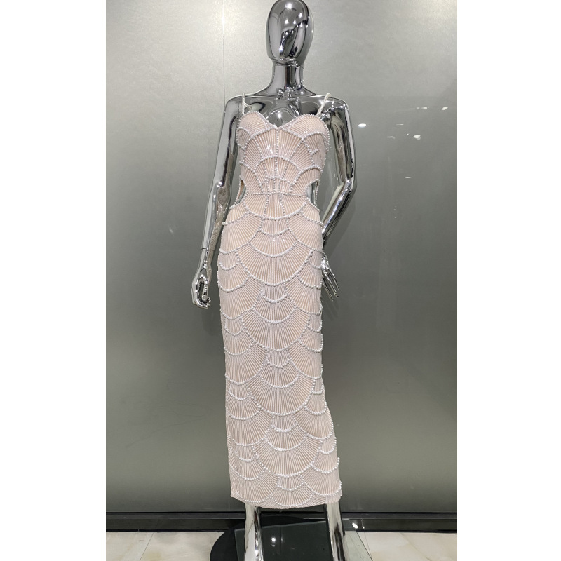 Product information: Pattern: geometric pattern Color: White Waist type: high waist Size: XS,S,M,L Popular elements: hollow out Style: Sling style Main fabric composition: Cotton Sleeve length: sleeveless Skirt Category: Dress Craft: beaded