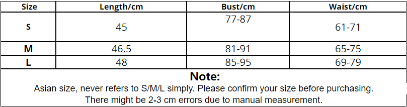 1. Asian sizes are 1 to 2 sizes smaller than European and American people. Choose the larger size if your size between two sizes. Please allow 2-3cm differences due to manual measurement.