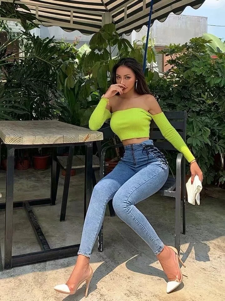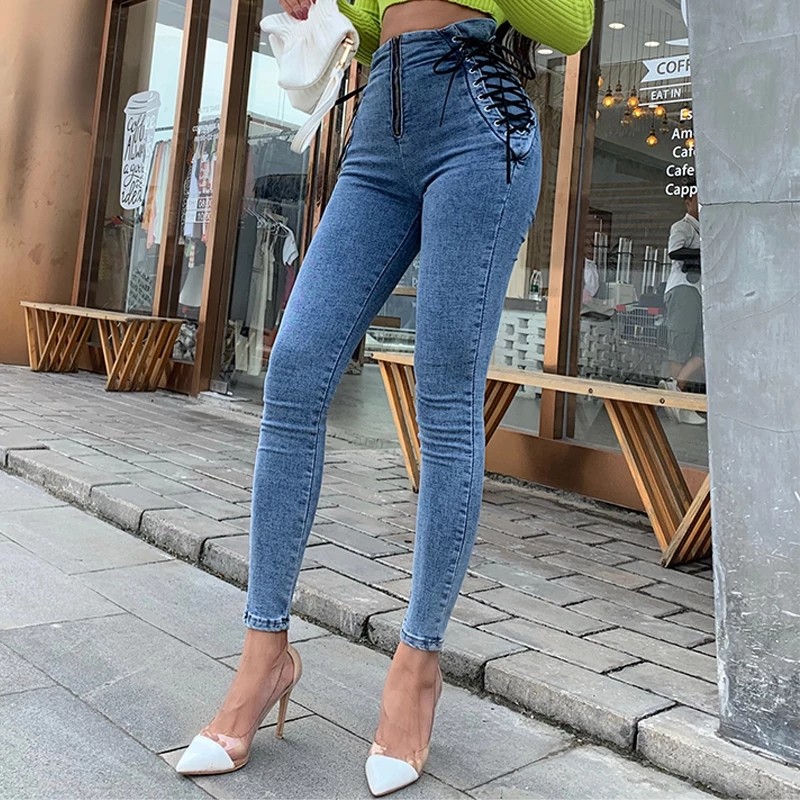 High waist stretch denim trousers skinny pants