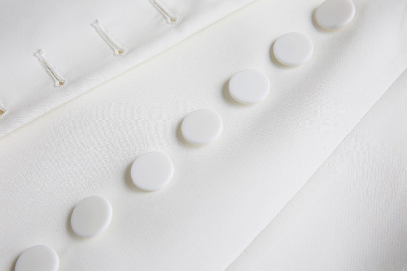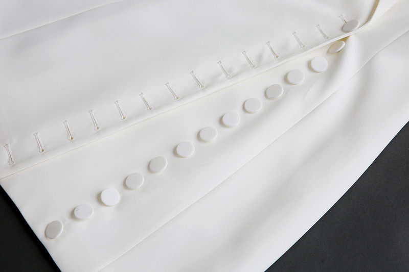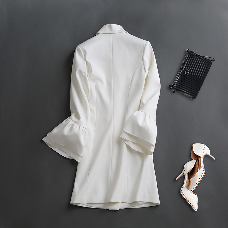 Features: single-breasted, flared sleeves, ruffles