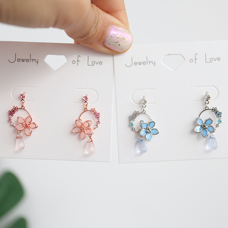 Product Details:Material: AlloyStyle: Women'sShape: flowerTreatment process: drop oilColor: Platinum blue flower-silver pin, platinum blue flower-ear clip,