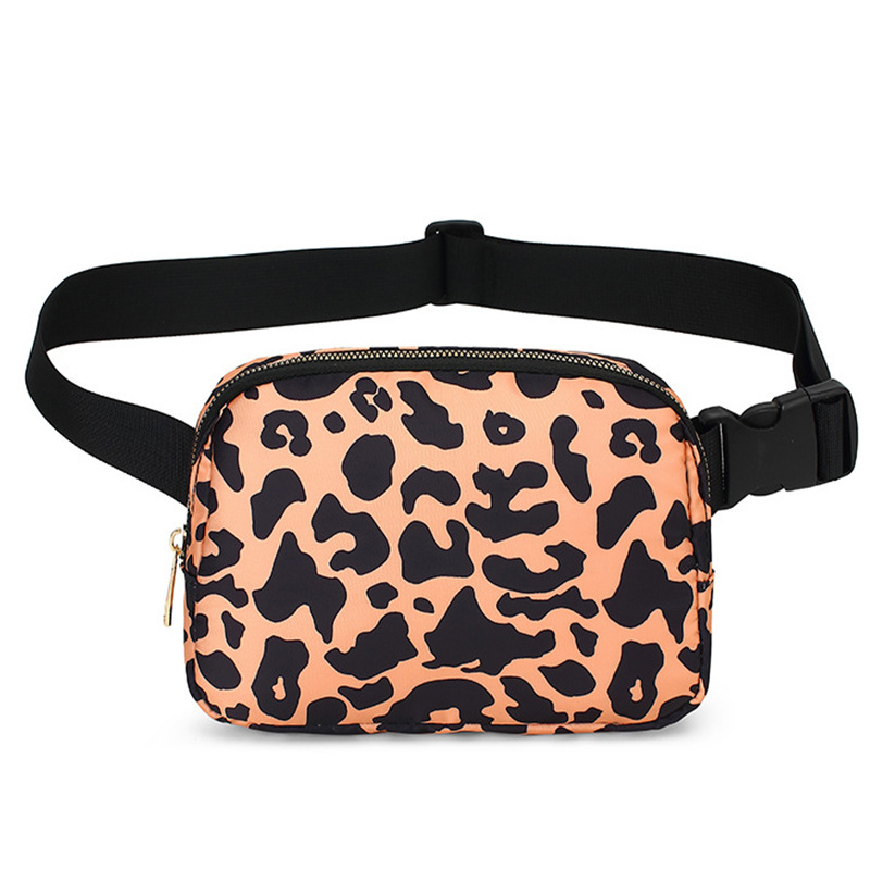 Color: white waist bag, grass green waist bag, orange waist bag, pink waist bag, black waist pack, gray waist bag, khaki green waist bag, dark blue waist bag, light blue waist bag, brown waist bag, black leopard print waist bag, white leopard print print waist bag