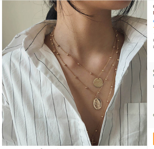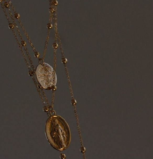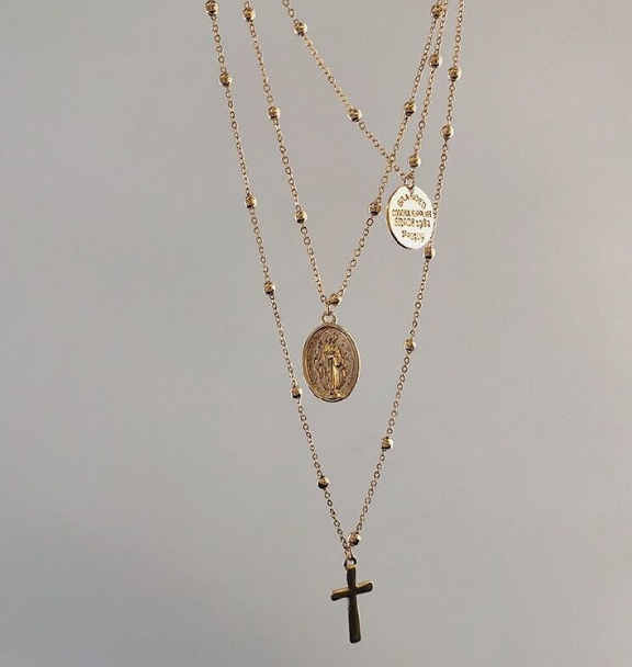 Madonna statue cross necklace multi-layer retro street ins coin clavicle chain