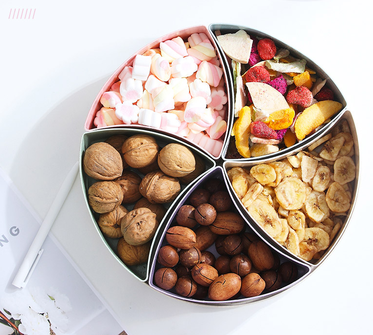 1. Unique compartments, one box and many compartments, facilitate the categorization of various foods