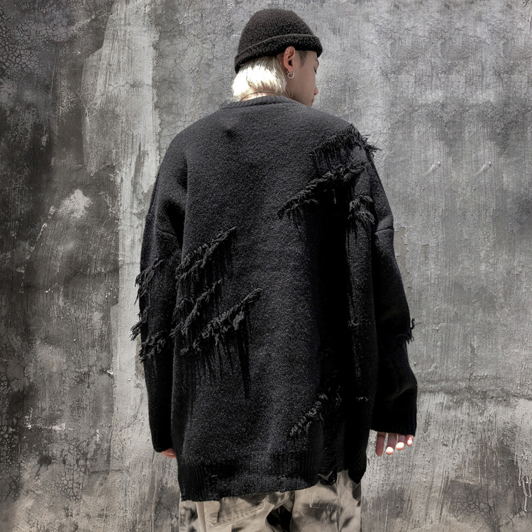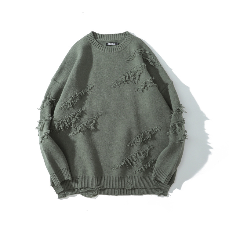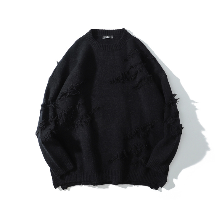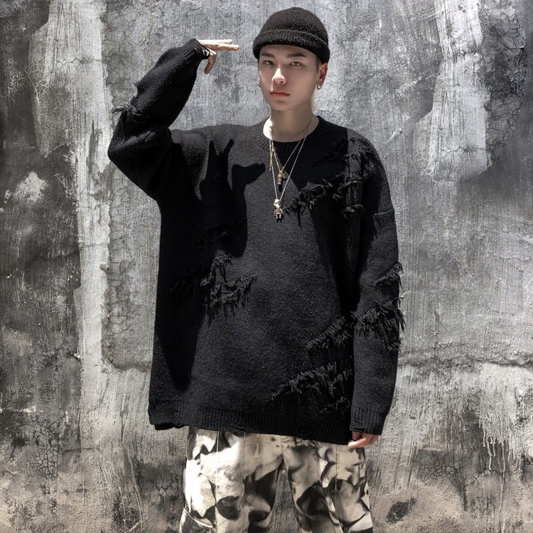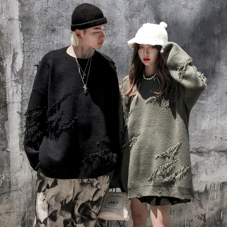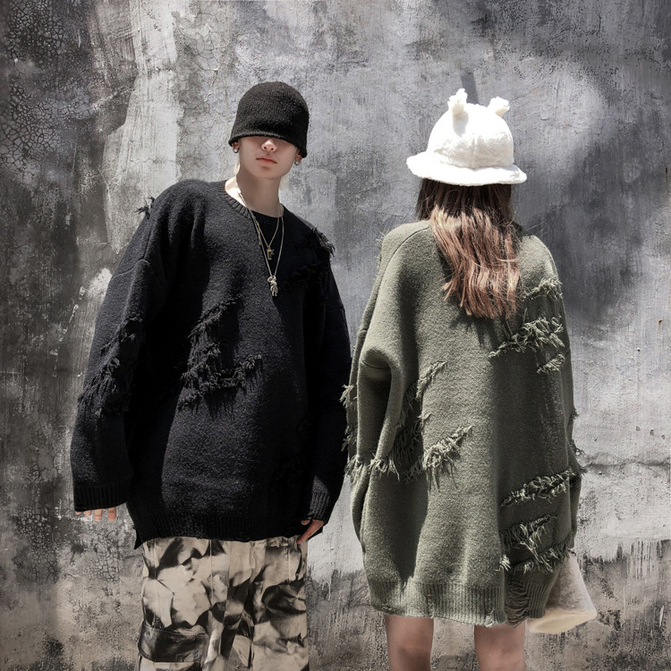 Cut through the hole loose lazy style Pullover Sweater street fashion brand hip hop couple solid color T-shirt coat