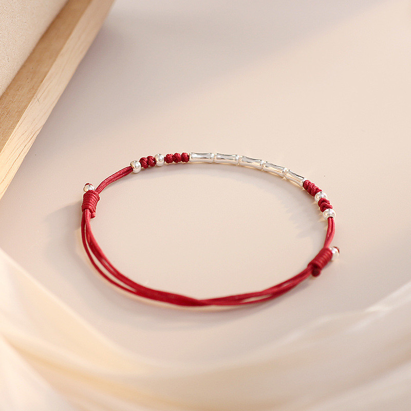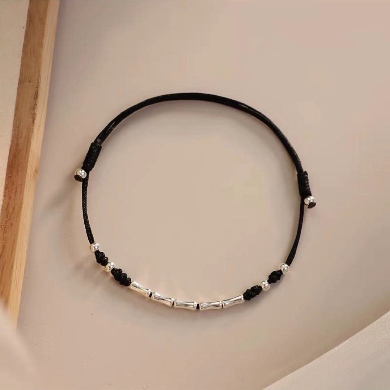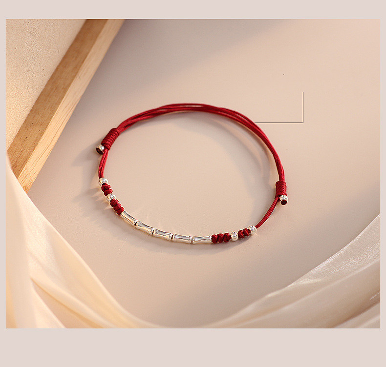 Product information:Type: Bracelet Color: sterling silver bamboo joint hand woven hand rope, sterling silver bamboo joint hand woven hand rope black rope Style: Women's Material: red rope