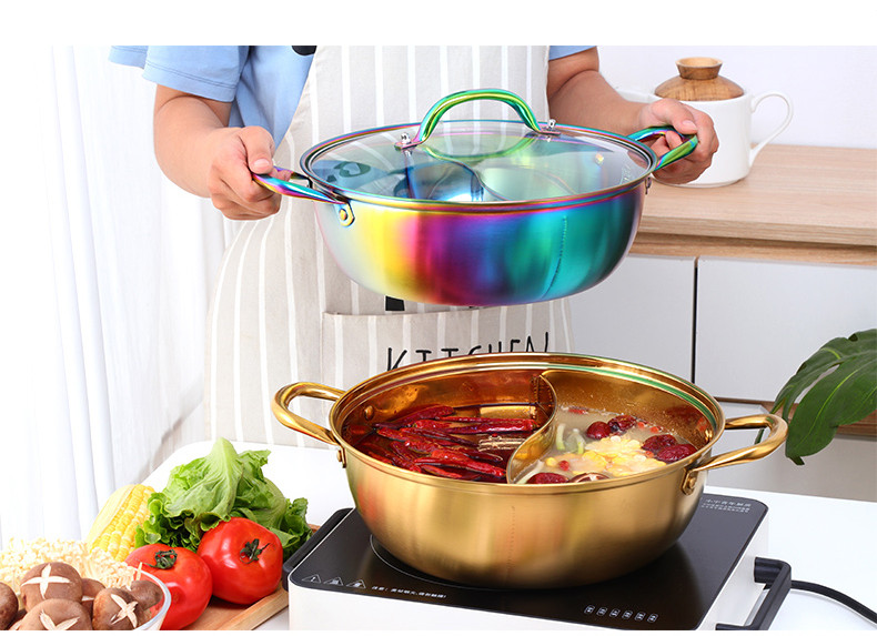 Material: 304 stainless steelStyle: ChineseFeatures: non-stick panPacking: color boxPot bottom material: compound bottomApplicable stove: applicable to induction cooker