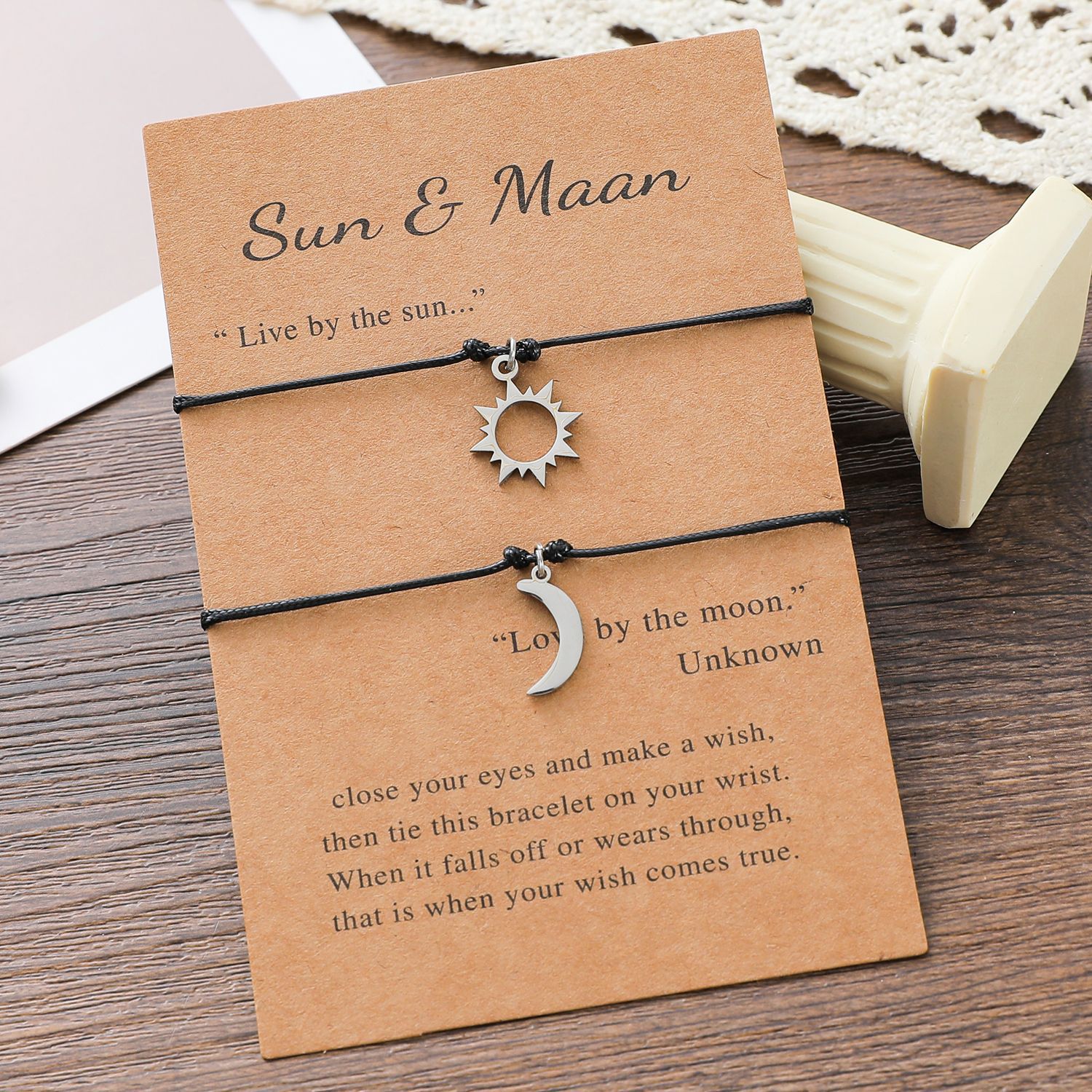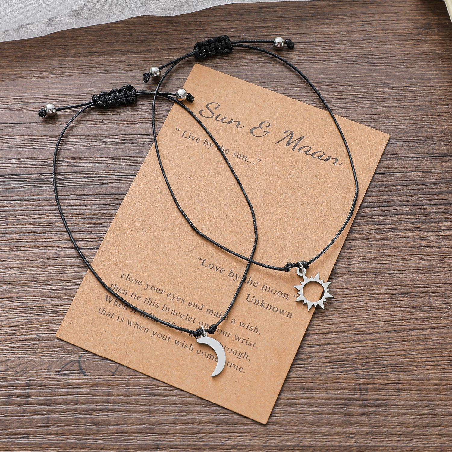 Style: European and American, individual, retro, fashionable, simpleMaterial: Stainless steelProcessing technology: hand weavingType: BraceletStyle: Couple styleModeling: geometry, sun and moon