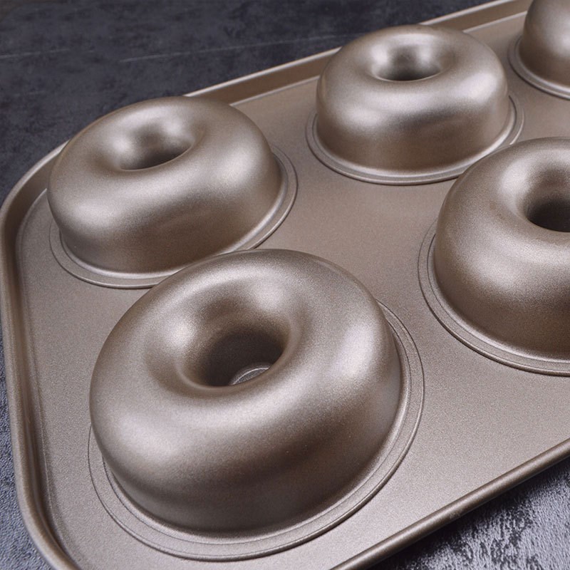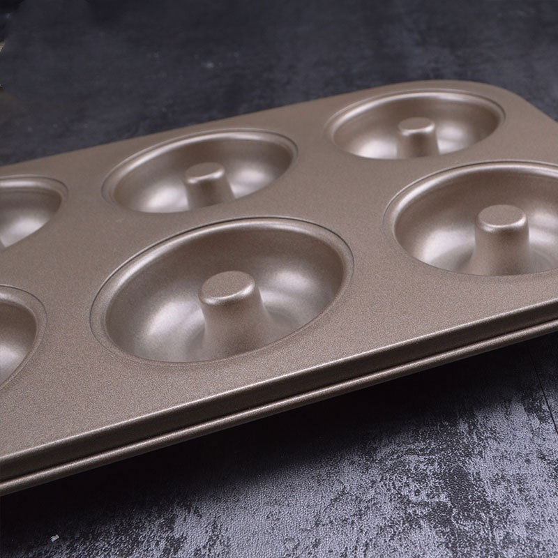 Color: goldenOuter size: 26.5*18.5*2.4cmSingle aperture: 6.5cmMaterial: carbon steel + non-stick coatingUses: cakes, jelly pudding, etc.Packing: OPP bag packing