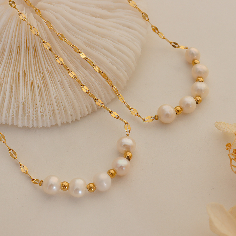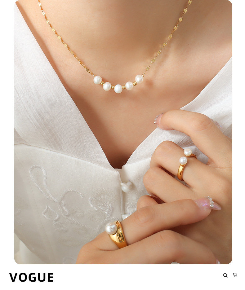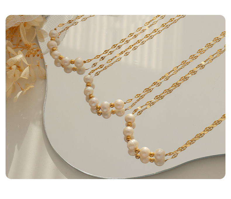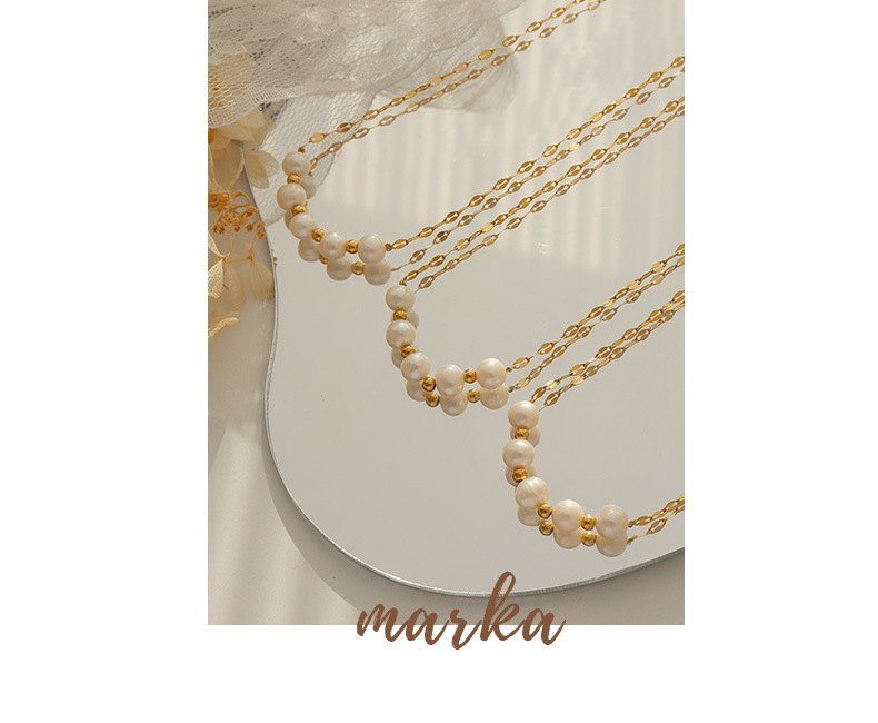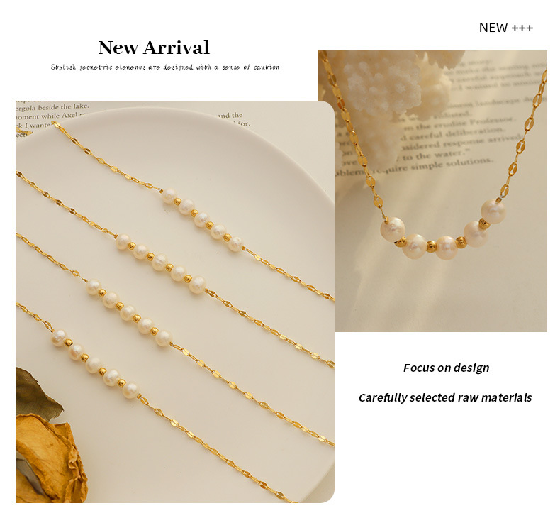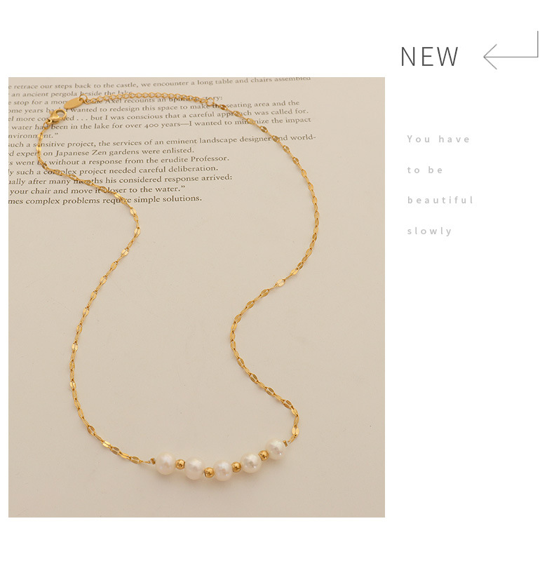 Product information:Treatment Process: Electroplating Color: Gold Chain style: lip chain Material: titanium steel Shape: Geometry Popular elements: Pearl Style: fashion OL Size: 40+5CM