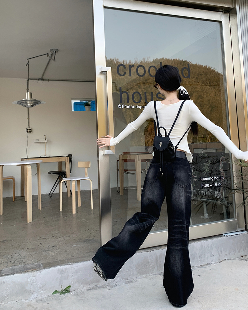 Product information: Fabric name: denim Color: blue, black Elastic: medium elastic Waist type: high waist Size: S,M,L Pants type: Wide Leg Style: wide leg pants