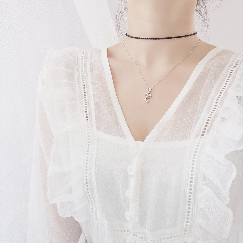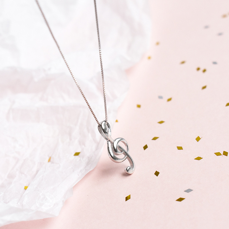 S925 sterling silver notes simple girl notes necklace slim clavicle chain trend jewelry