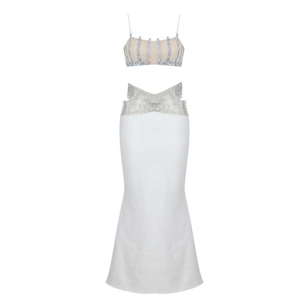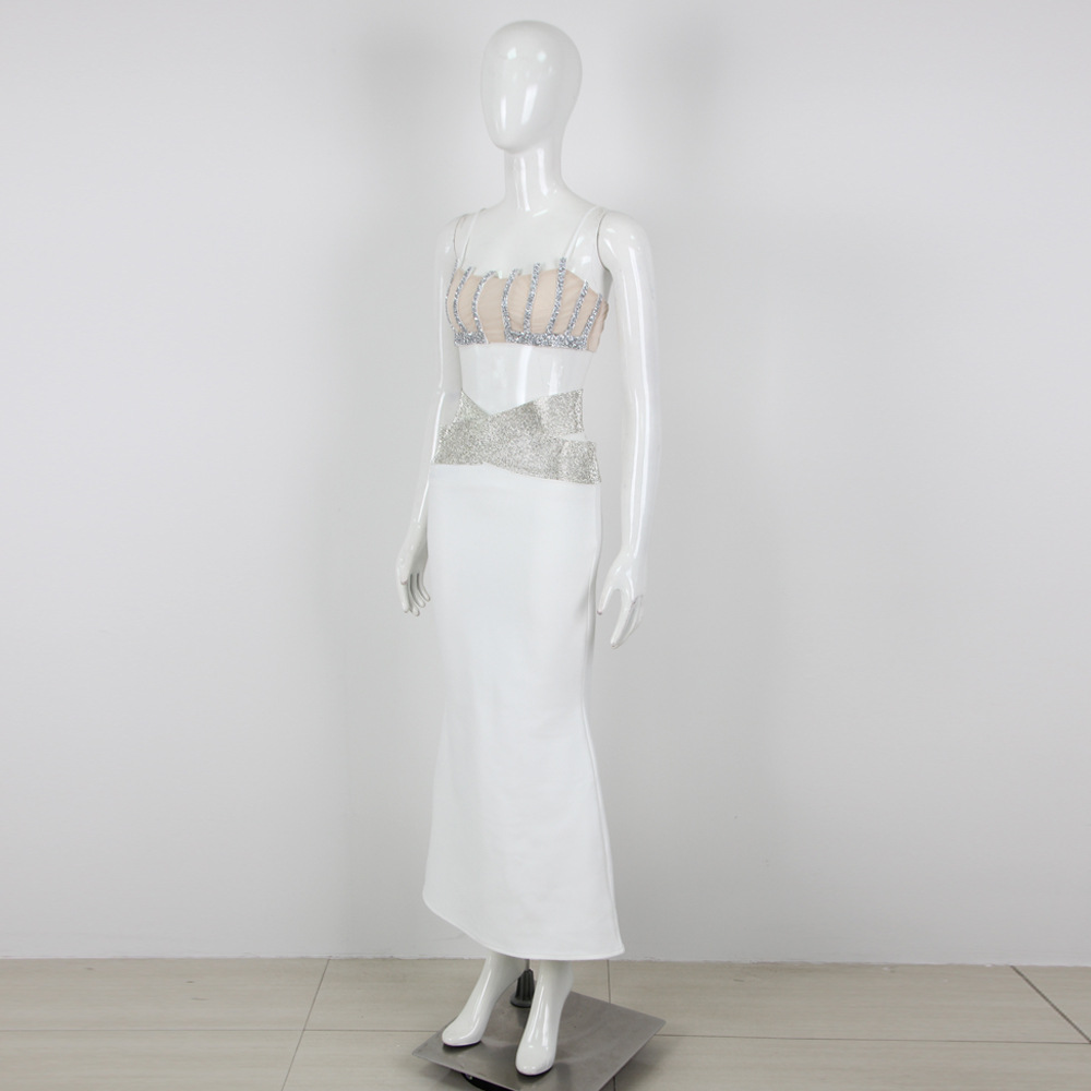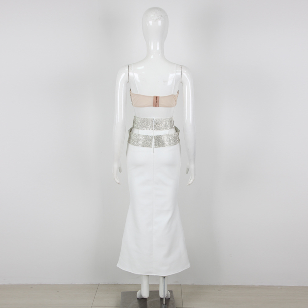 Product information: Pattern: drill bit Fabric name: Polyester Color: White Size: XS,S,M,L Style type: private clothing socialite Popular elements: Diamonds Style: sweet and spicy Process: Hot drill
