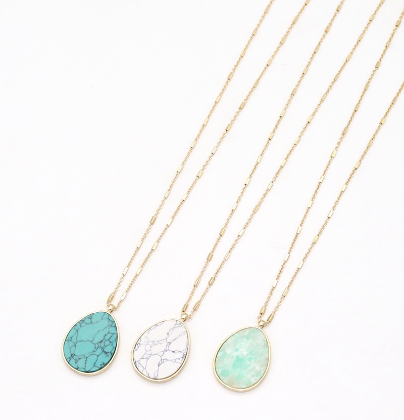 Product information:Style: European and AmericanMaterial: AlloyTreatment process: electroplatingType: NecklaceStyle: women'sShape: drop shapeColor: turquoise, green stone, white turquoisePackage:Gold-plated necklace X1