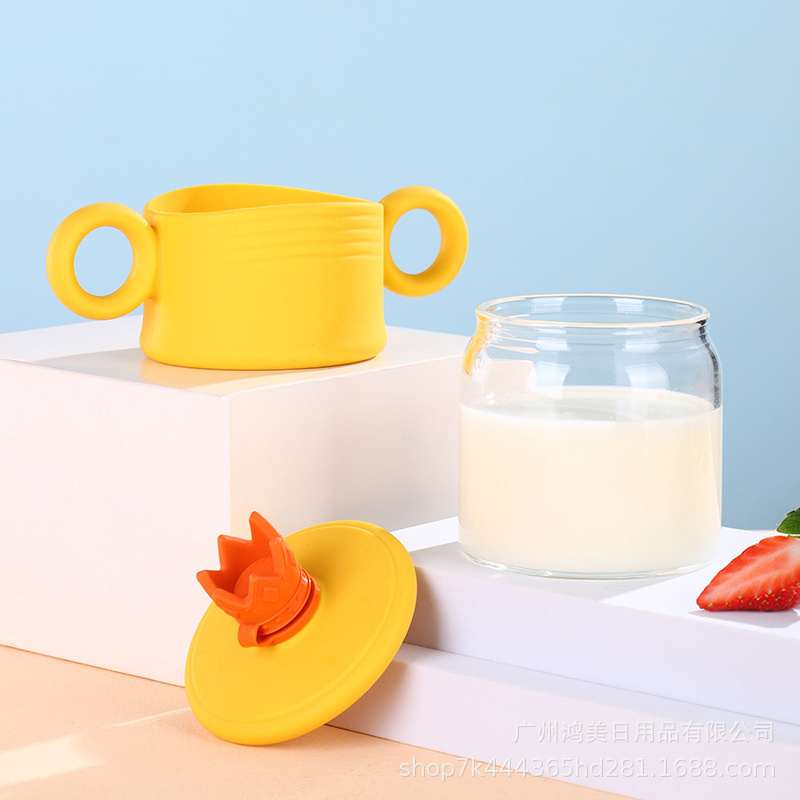 Material: silicone, glassStyle:Fashion SimpleFeatures:High temperature resistance, heat insulationColour:yellow,green,blue,pink