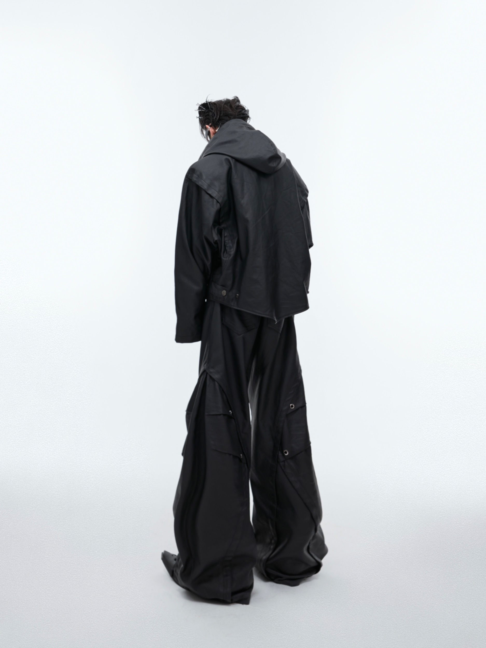 Color: black coat, black pants