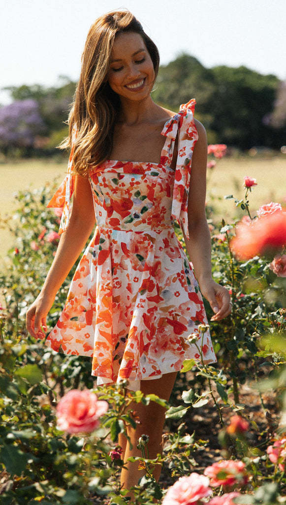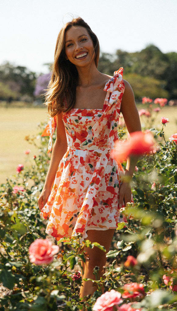Product information:Pattern: plants and flowers Skirt type: Princess dress Color: white, orange Size: S,M,L,XL Fabric name: Polyester Skirt Category: Dress
