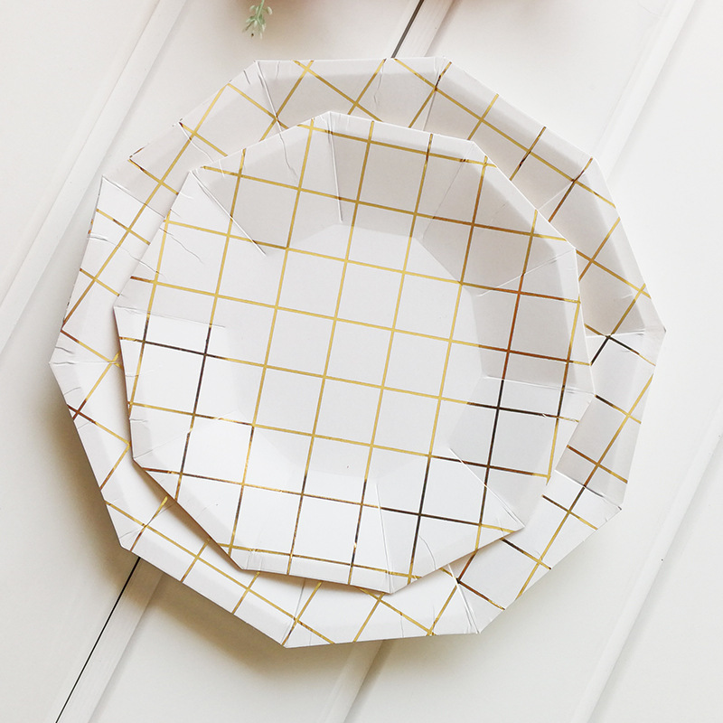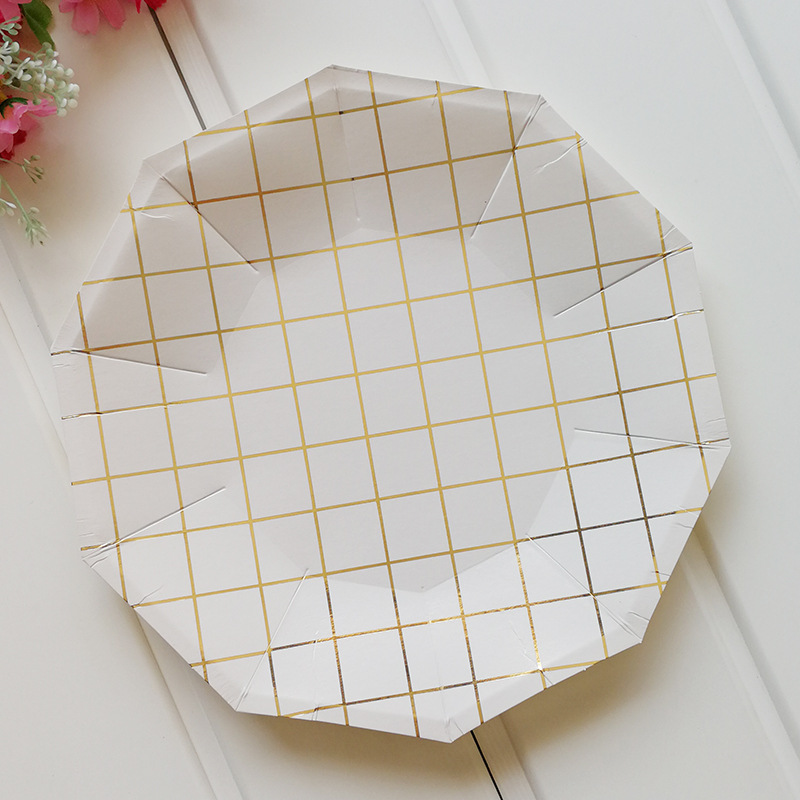 Gilt mesh paper tray, paper cup, straw tableware set.