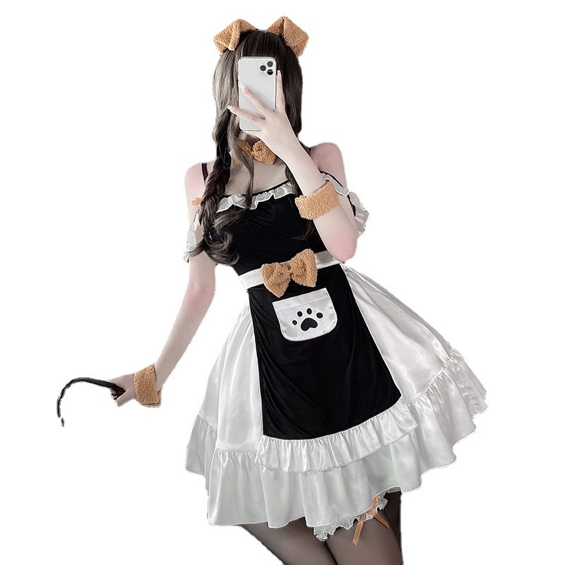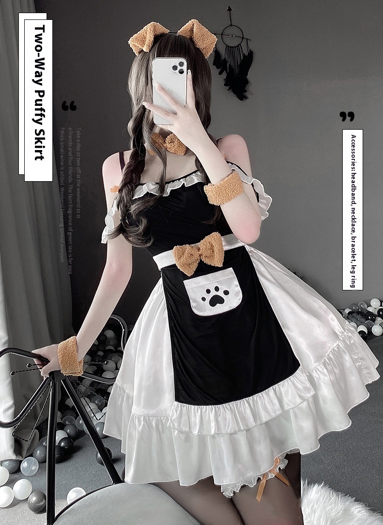 Headwear+neck accessory+suspender tail integrated apron+skirt+T-pants+bracelet * 2+leg loop * 2