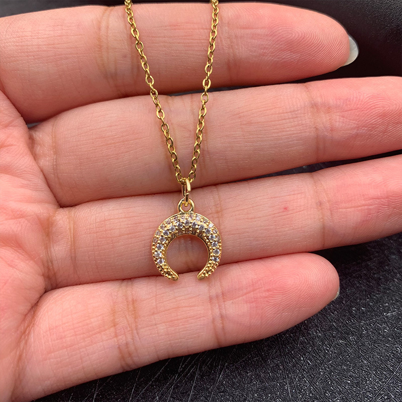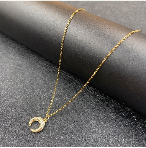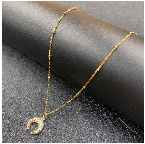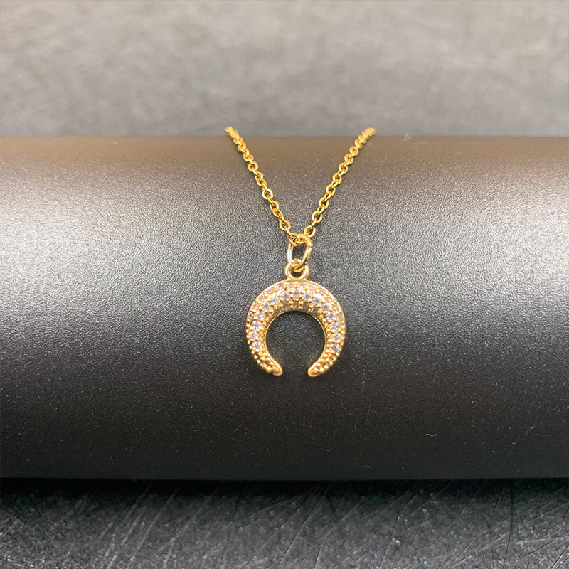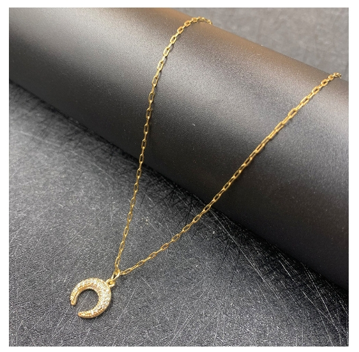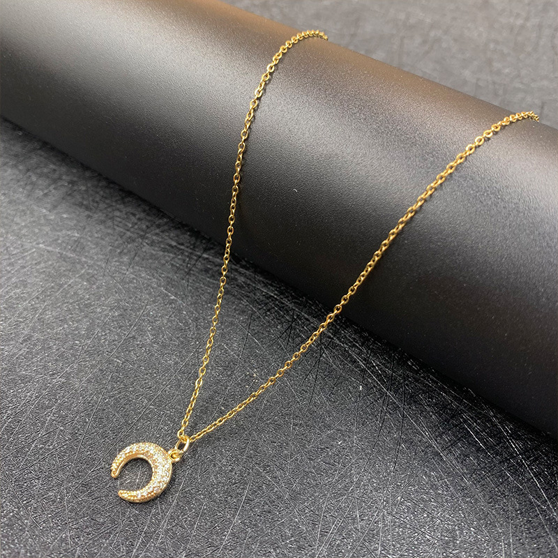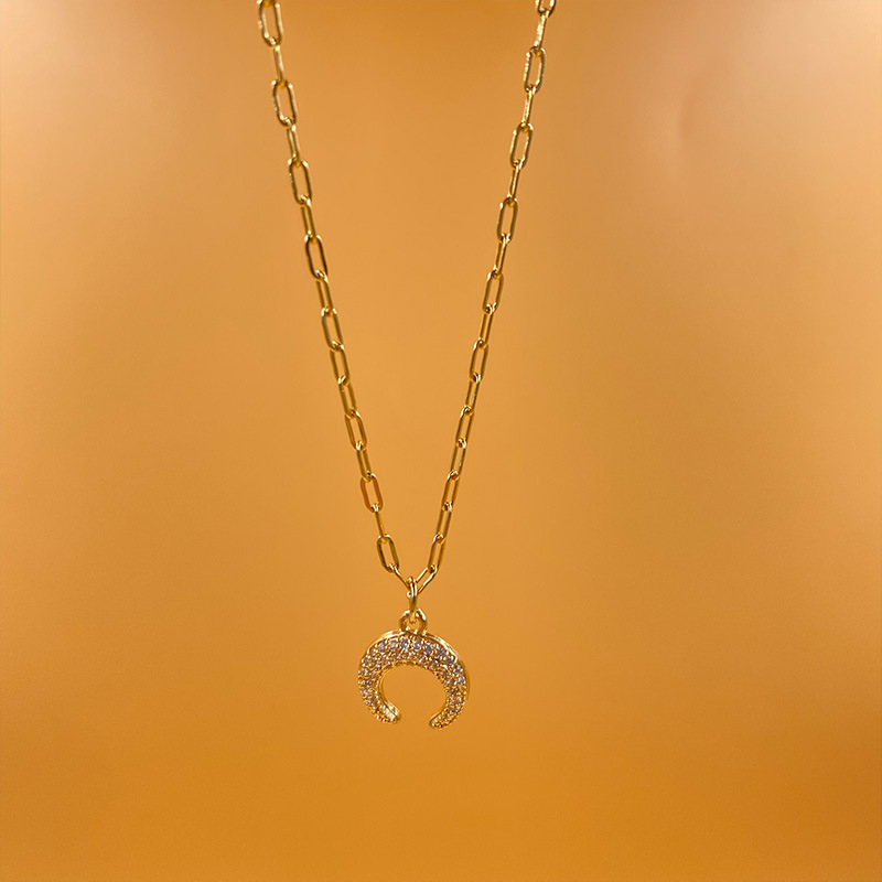 Color: Moon full zirconium-O-shaped necklace, Moon full zirconium-satellite chain, Moon full zirconium-clip chain