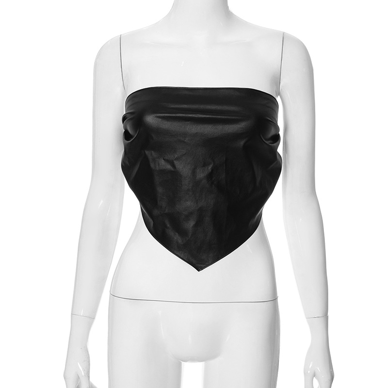 Product information: Pattern: solid color Color: Black Elasticity: Micro-elastic Size: S,M,L Popular elements: leather stitching Style: Tube top Fabric name: PU leather Main fabric composition: PU Length: Short (40cm