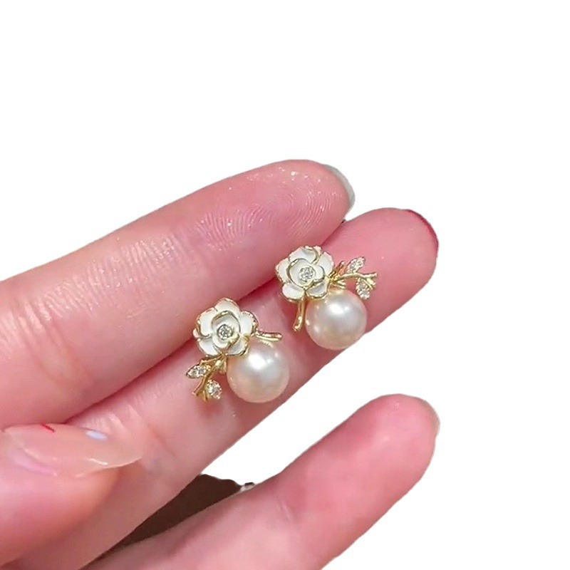 Camellia Pearl Stud Earrings Decorative