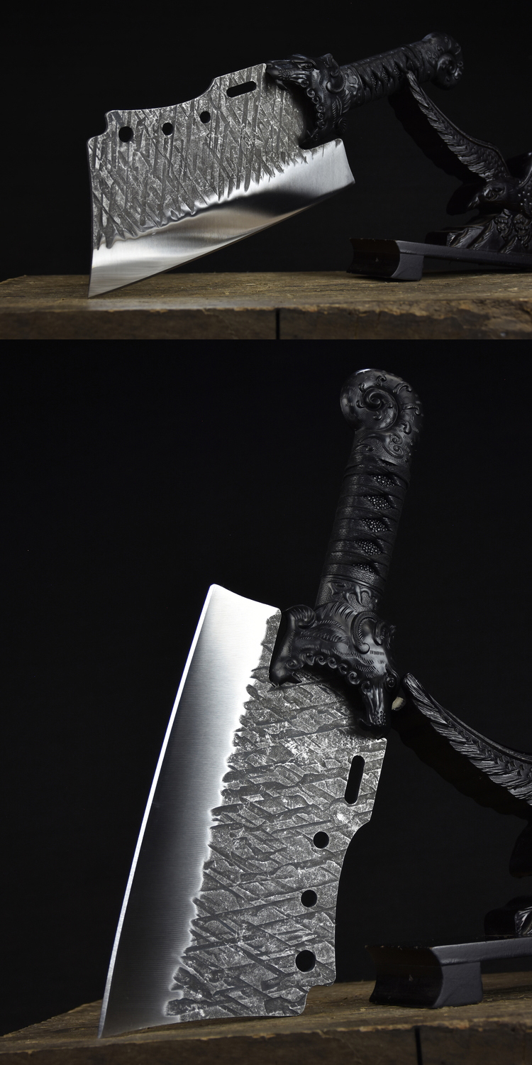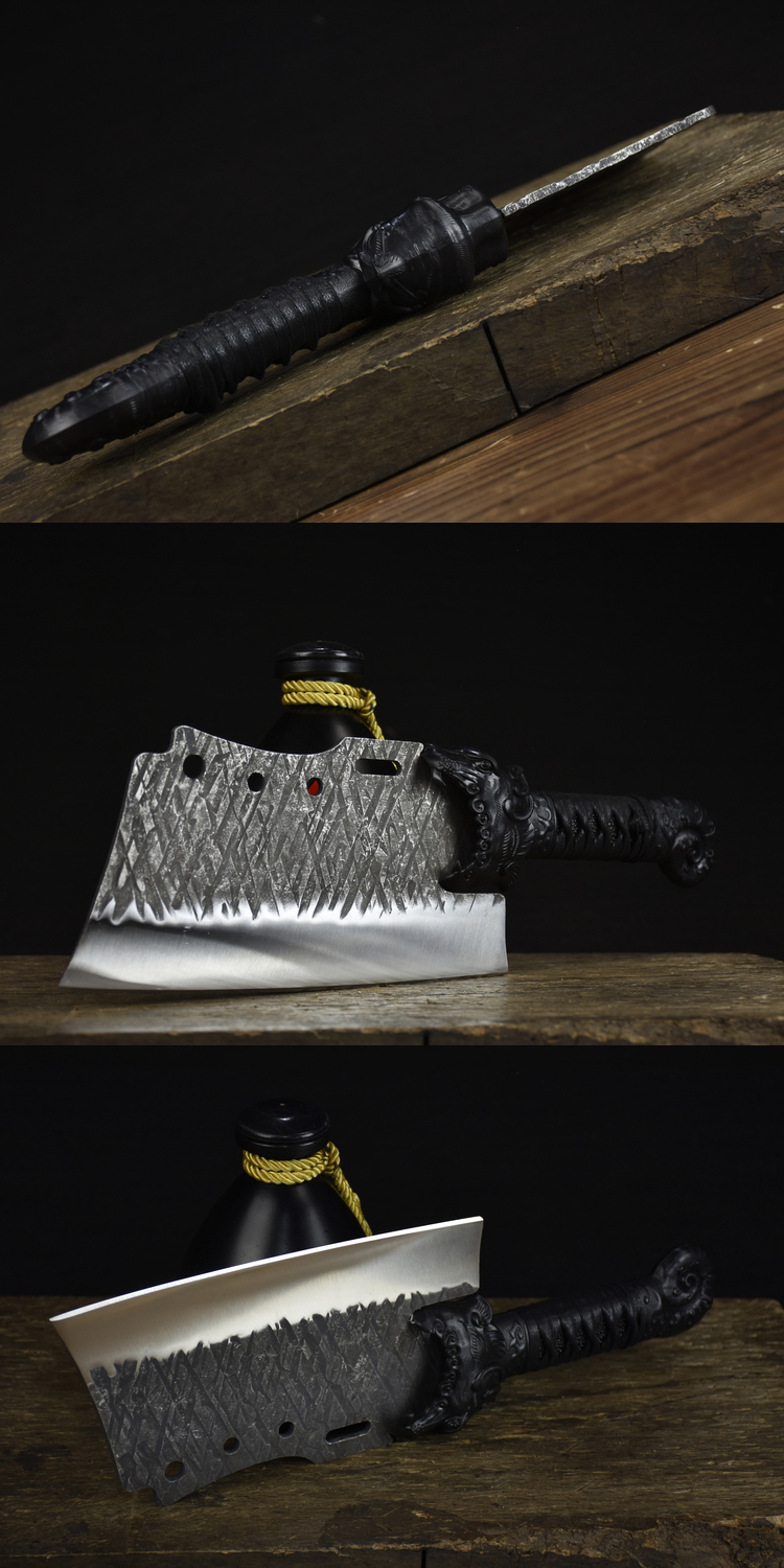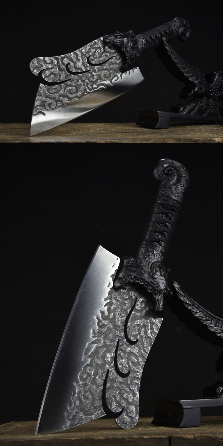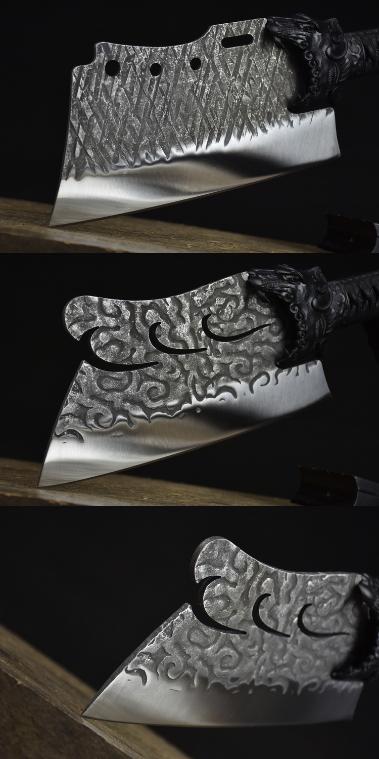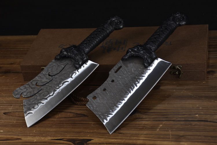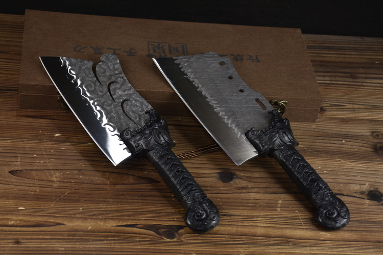 Blade material: 4Cr13MOV (4 chromium 13 molybdenum vanadium steel) Handle material: PC-ABS alloy + solid wood + non-slip rope Weight: 674g