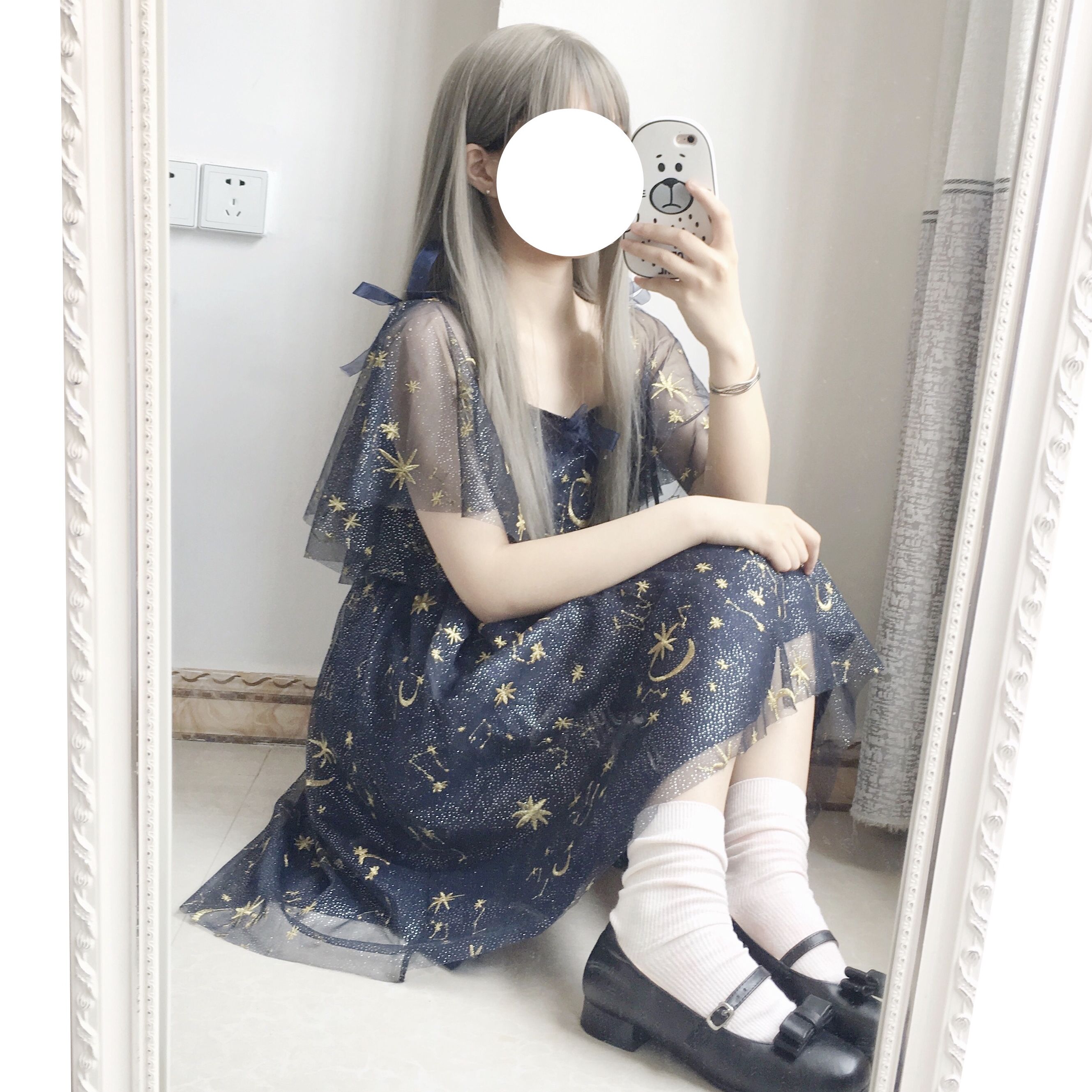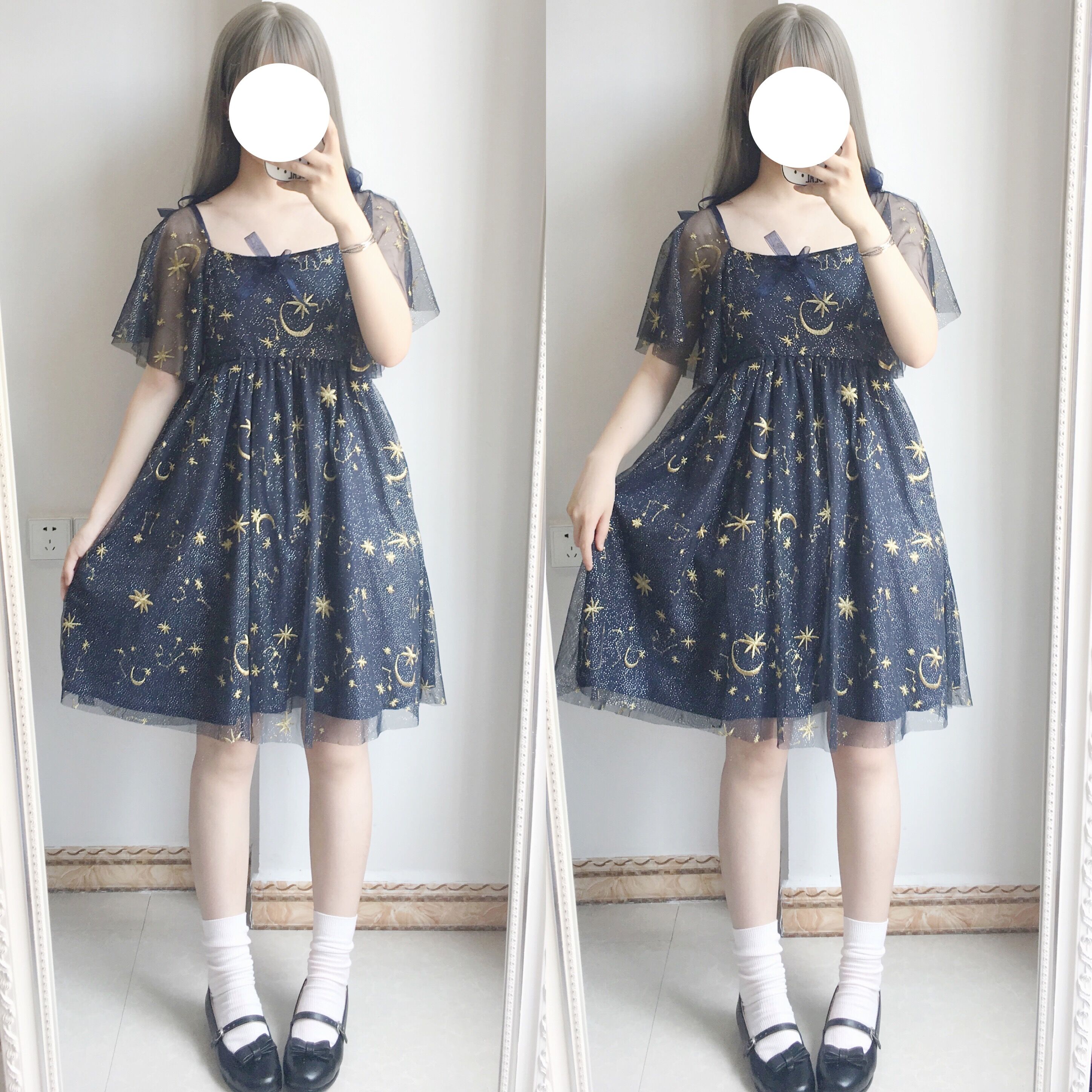Color: dark blue, apricot size: one size pattern: plain Process: collage / splicing Fabric name: chemical fiber blend Style: Japanese