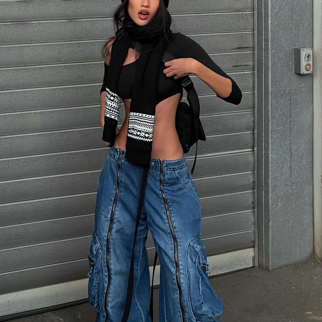 Product information: Color: T3491 Blue Size: S,M,L Style: wide leg pants Fabric name: denim Main fabric composition: Cotton