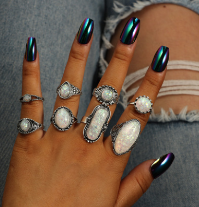 Retro Geometric Round Oval Gemstone 8 Piece Set Ring Joint Ring