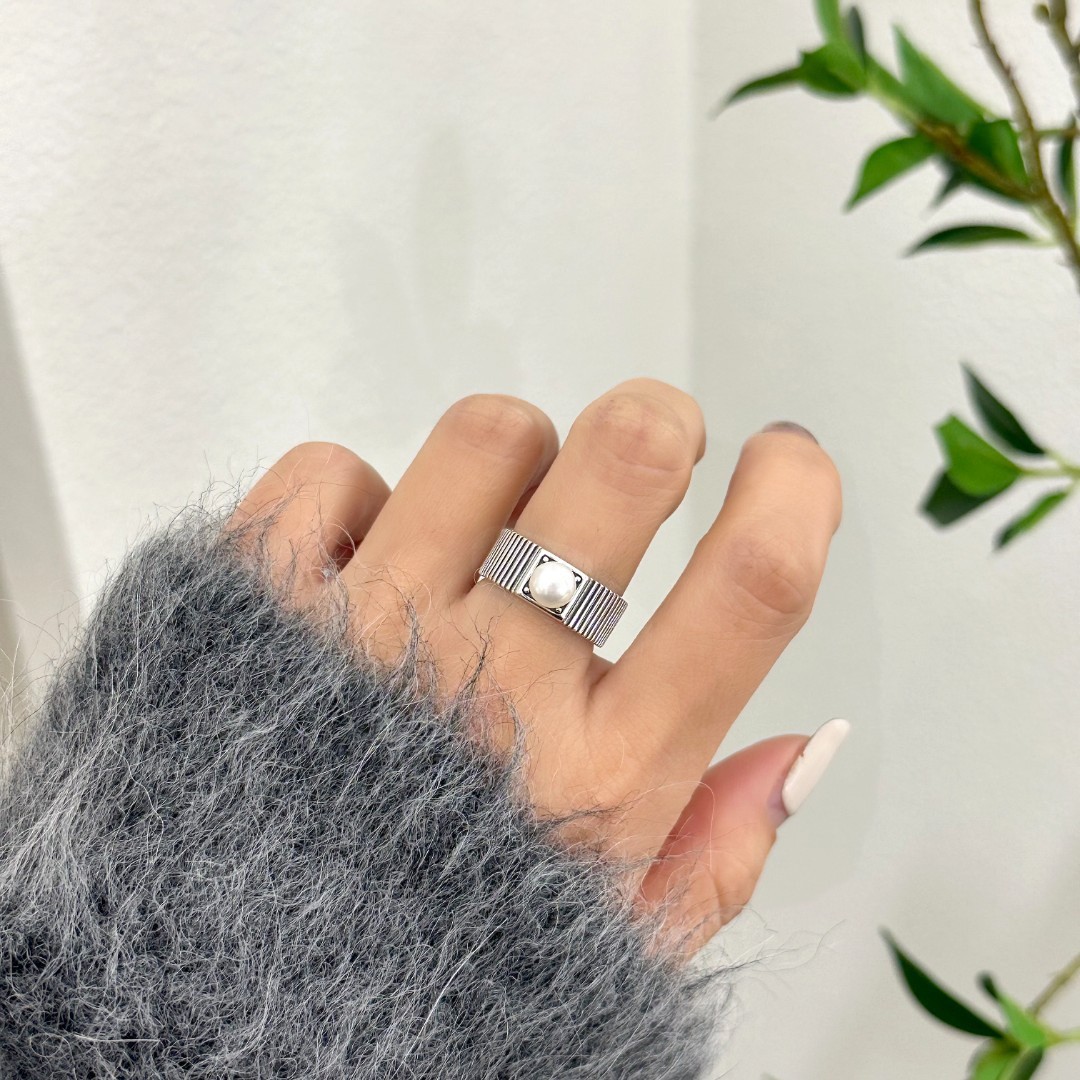 Product information:Type: open mouth Treatment Process: Pearl Inlay Color: vertical stripes freshwater pearl ring Applicable population: Female Size: adjustable opening Style: Women's Material: 925 silver