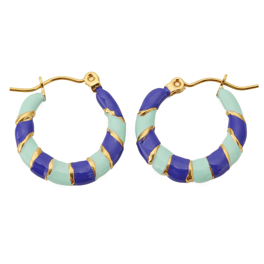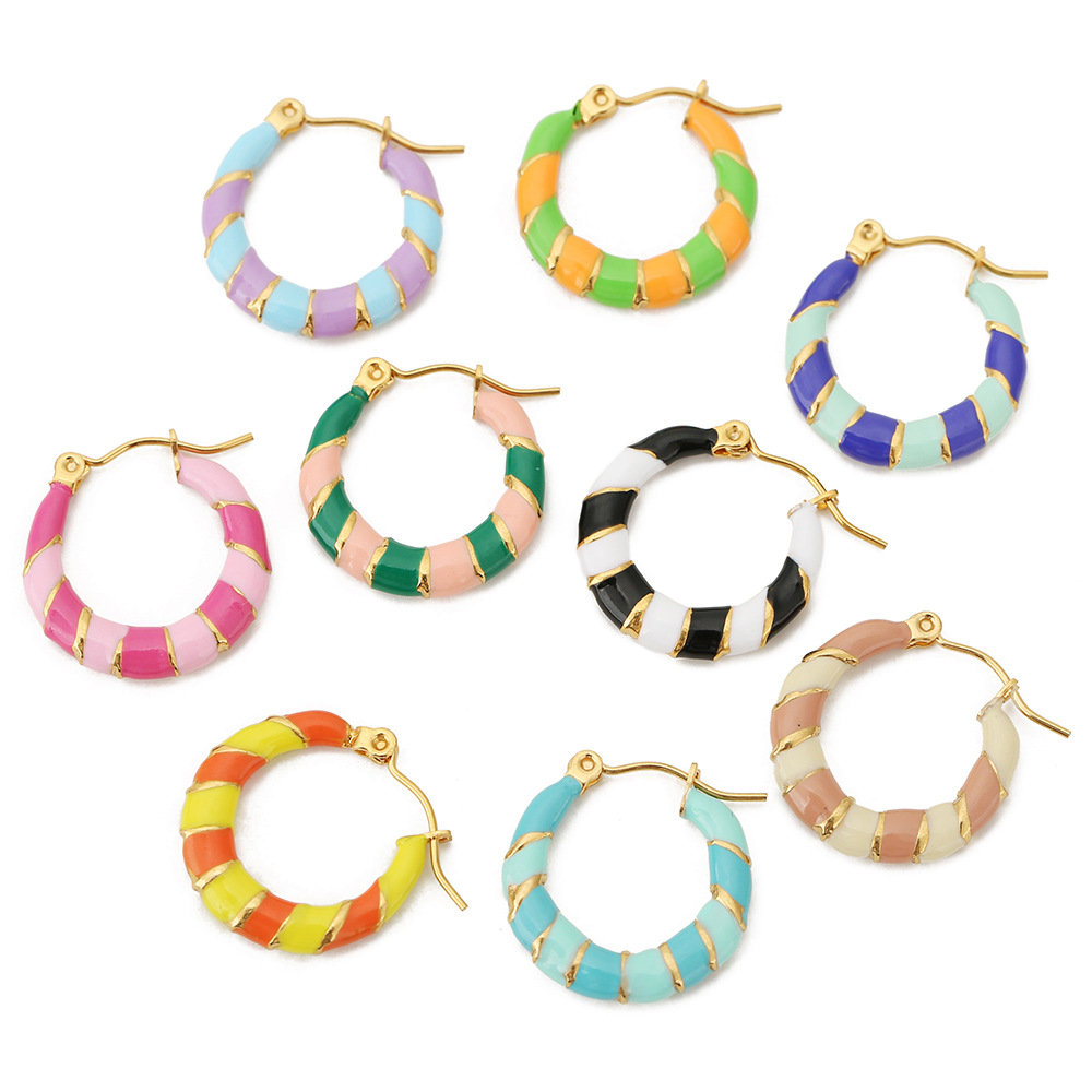 Color: Pink Rose Red-C-shaped ring two colors enamel earrings, light green sapphire blue-C-shaped ring two colors enamel earrings, light purple light blue-C-shaped ring two colors enamel earrings, grass green orange-C-shaped ring two colors enamel earrings, lemon yellow orange-C-shaped ring two colors enamel earrings, black white-C-shaped ring two colors enamel earrings, light coffee beige-C-shaped ring two colors enamel earrings, light blue sky blue-C-shaped ring two colors enamel earrings, dark green light pink-C-shaped ring two-color enamel earrings