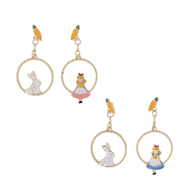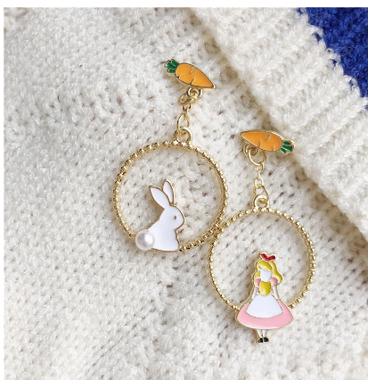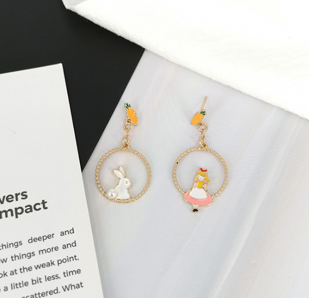 Product Details :Style: Japanese and KoreanMaterial: AlloyTreatment process: electroplatingType: EarringsStyle: Women'sStyling: Alice Rabbit CarrotPackaging: Individually packedInlay material: not inlay