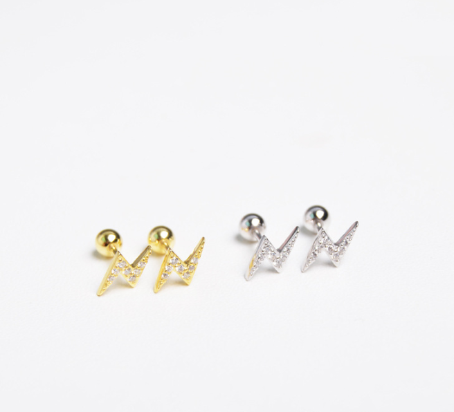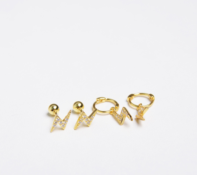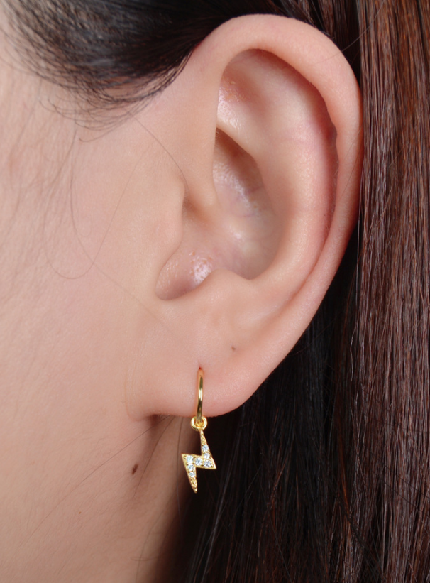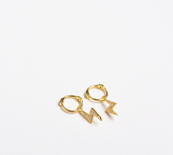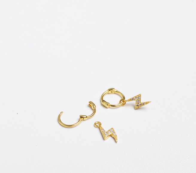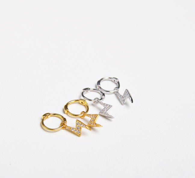 Material: S925 silverProcess: Gold plating0.8mm rod thickness, 7mm rod lengthBall 4mmLightning about 10 * 4.5mmEar ring 7mm inner diameter