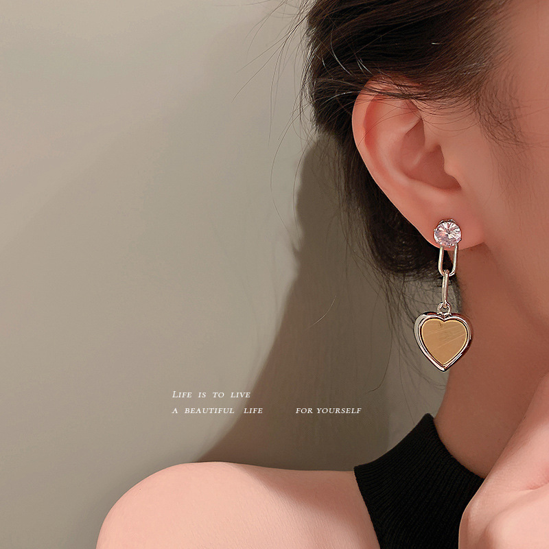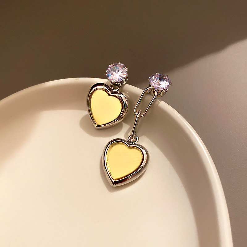 NAME: 925 Silver Needle Asymmetric Crystal Heart Stud EarringsMATERIAL: alloy, crystal, silver needleWEIGHT: 6.7gModeling: LoveTreatment process: electroplating