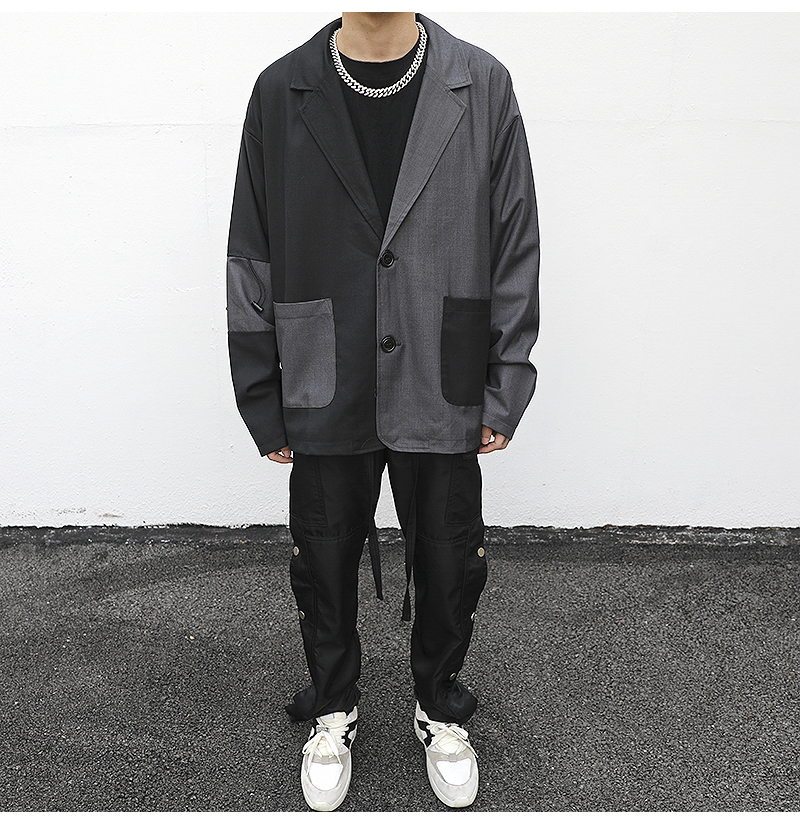 American casual style stitching contrast suit jacketBreaking the traditional impression of suits, the streets are full.