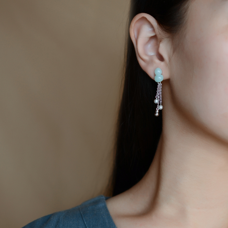 Material: silverStyle: National styleStyle: Women'sModeling: GeometryTreatment process: inlaid jadeInlaid material: sterling silver inlaid with Hetian jadeImage: Retro