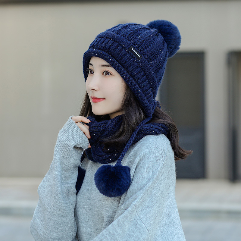 Product information:Product category : Knitted hatApplicable gender: femaleMaterial: WoolColor: red, blue, pink, gray, apricotSize: all sizePacking list:Ladies hat + scarf*1 set