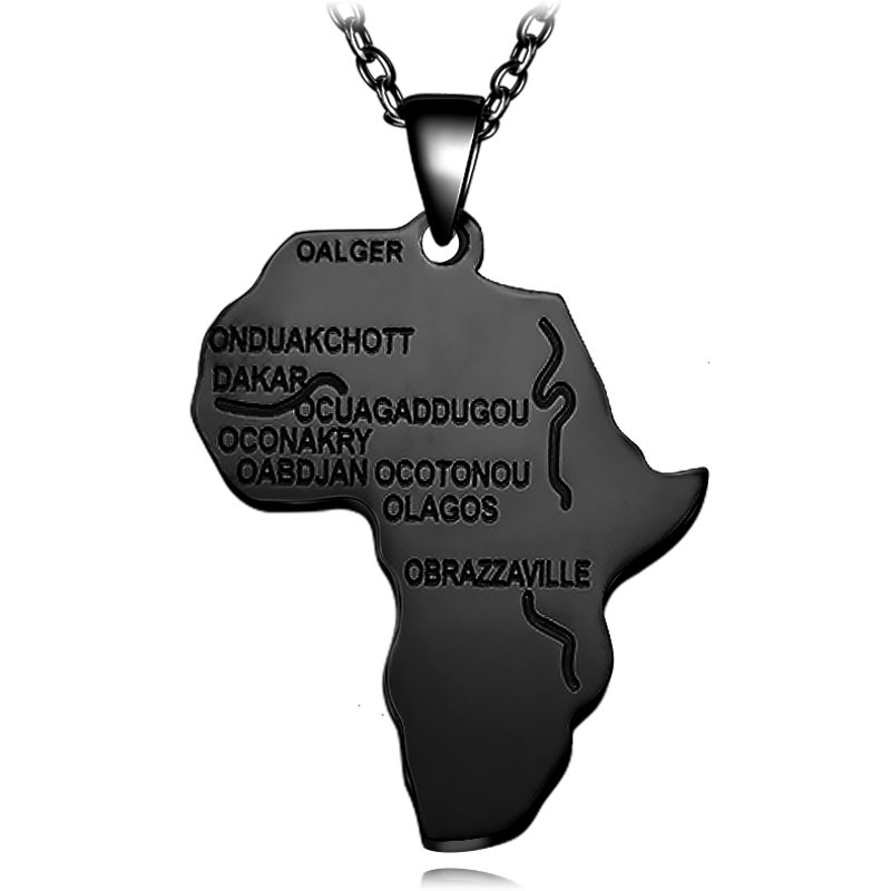 Fashion Vintage Black Silver Gold Color Stainless steel Africa Map