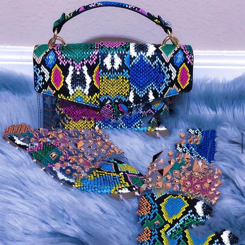 5 Square snake pattern bag A+ nail slippers,