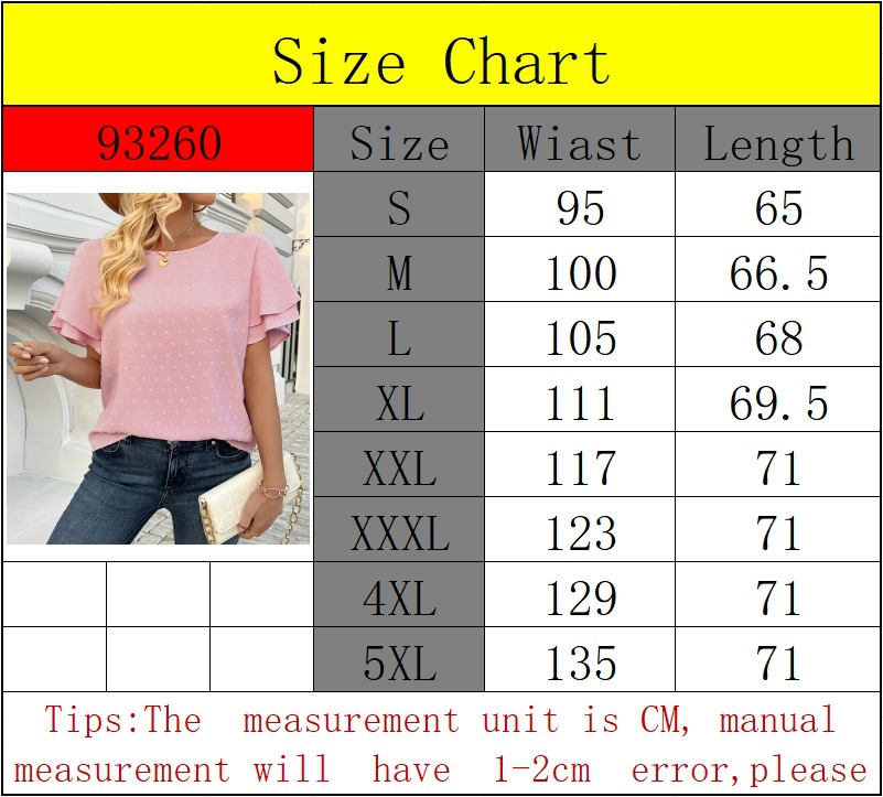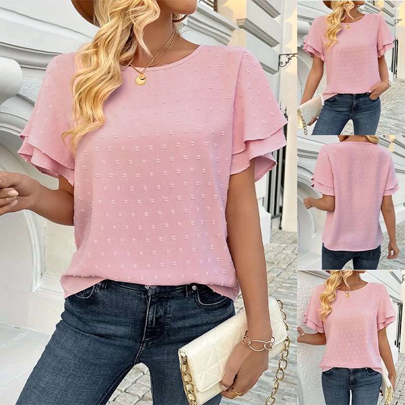 Product information: Pattern: solid color Color: Pink Size: S,M,L,XL,XXL,XXXL Popular elements: Three-dimensional decoration Style: pullover Fabric name: Polyester Sleeve length: short sleeve Craft: Jacquard