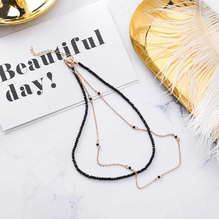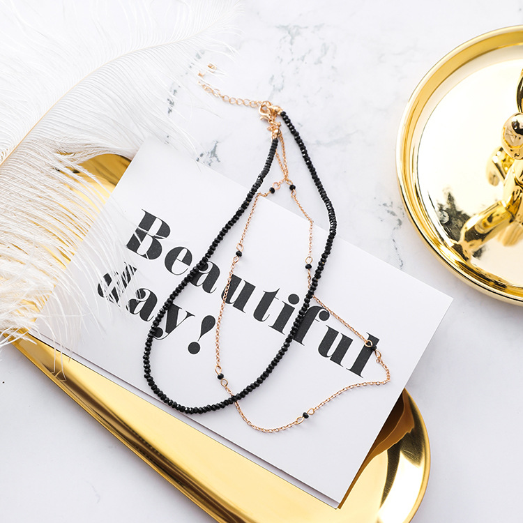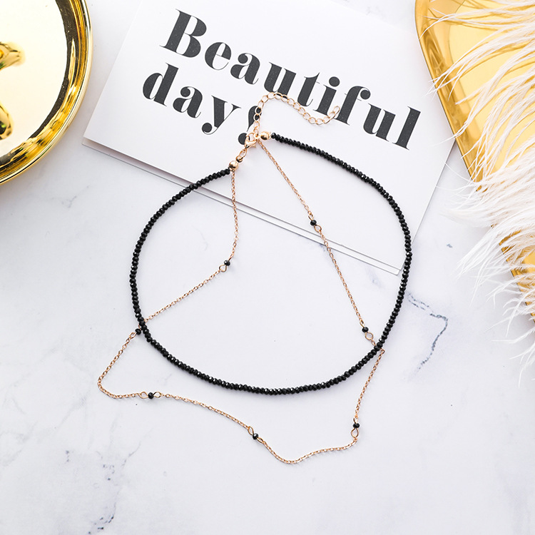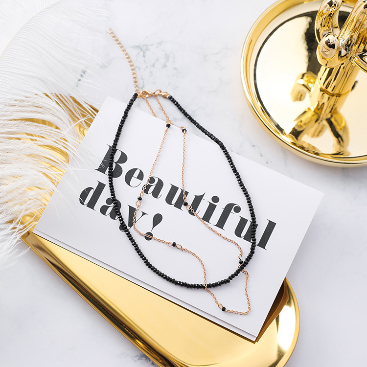 Japanese Harajuku handmade black spinel double neck chain simple wild clavicle chain short necklace chain collar neck strap