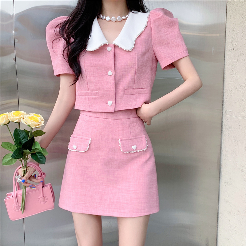 Color: pink top, green skirt, pink skirt, green top