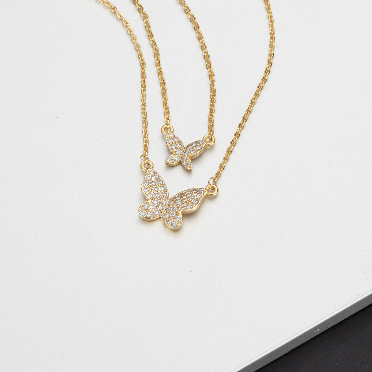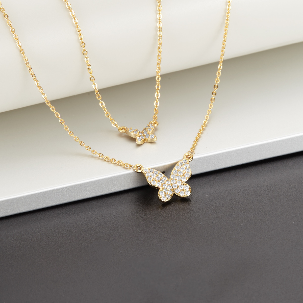 Material: copper plated 18k real gold + zirconSize/size:Pendant: 11mm*14mm, 7mm*9mmChain: external 38cm, inside 33cmextension: 6cmStyle: Women's