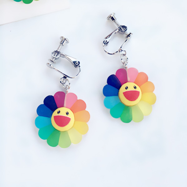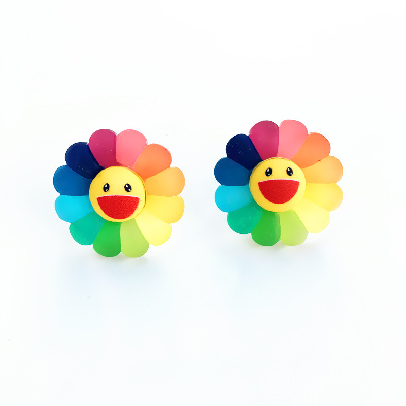 Summer fresh ins girl heart super fairy colorful sun flower earrings frosted smiley face earrings fashion wild ear clip