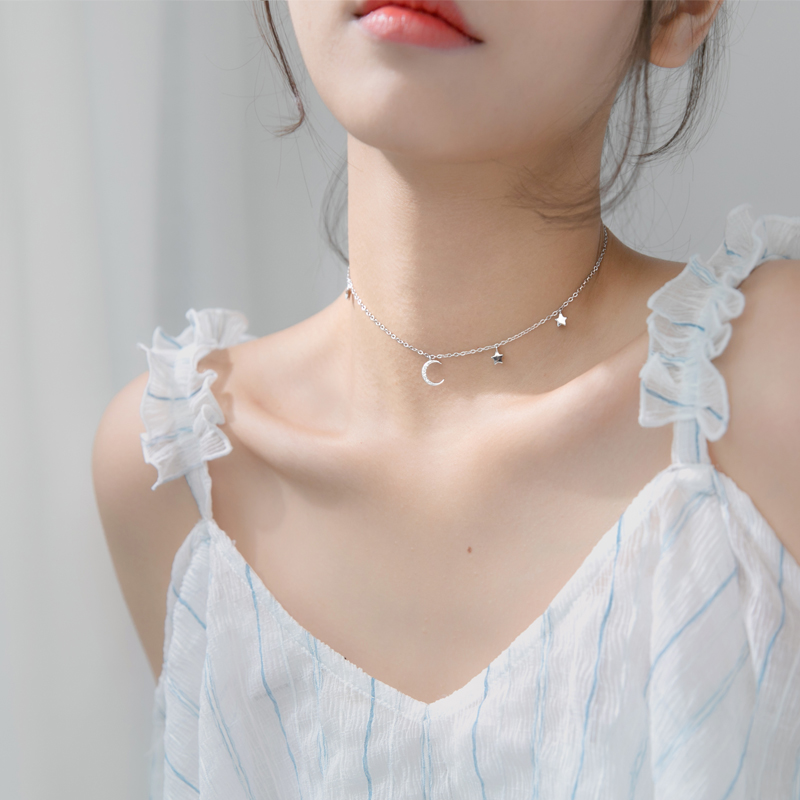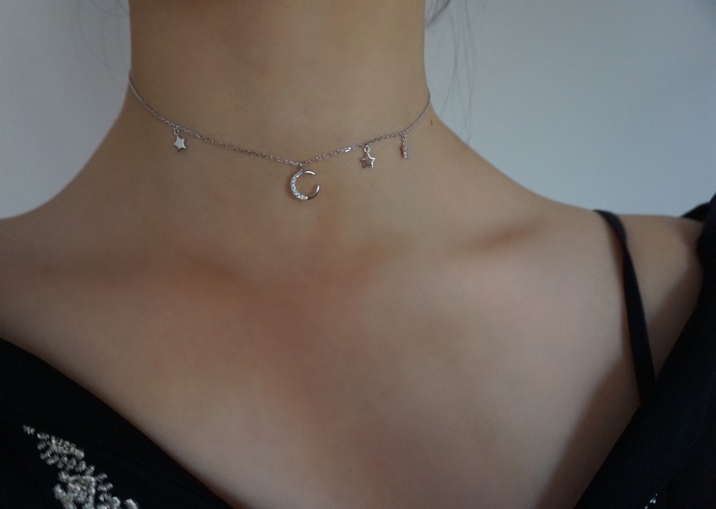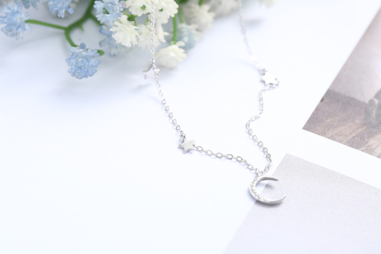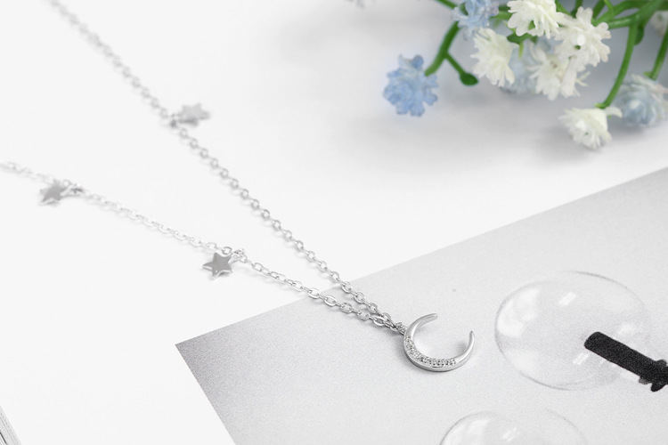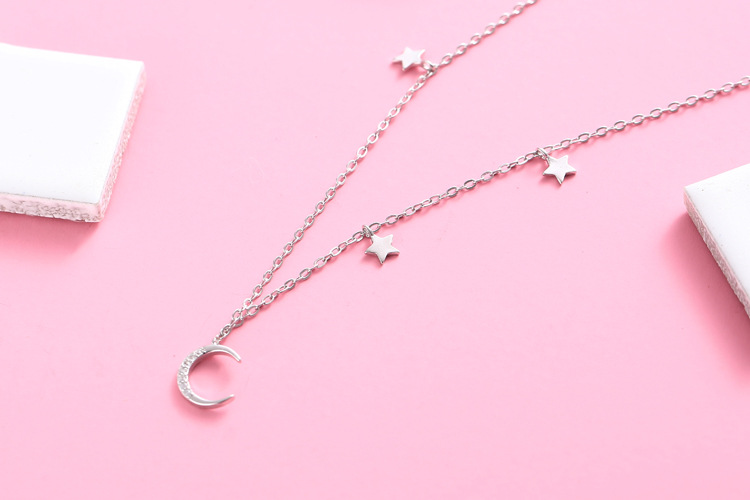 Product size: small star pendant 0.4*.4cm moon 1*0.9cm chain length 43cm