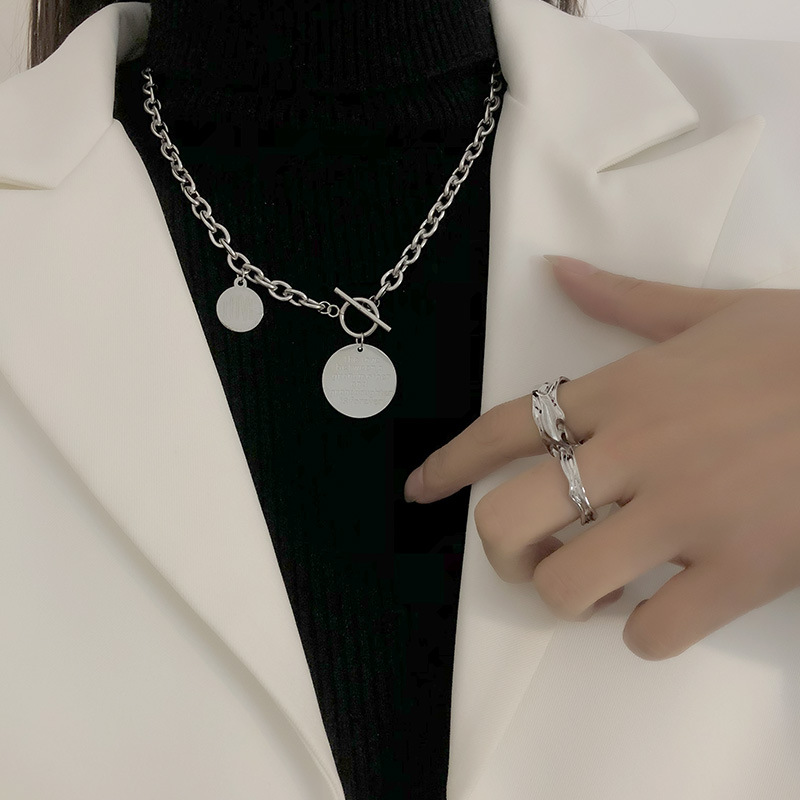 Product information:Color: round brand-necklace titanium steelPendant material: titanium steelStyle: UnisexChain style: O-shaped chainMaterial: titanium steelShape: GeometricPopular elements: English lettersStyle: sweet and cool
