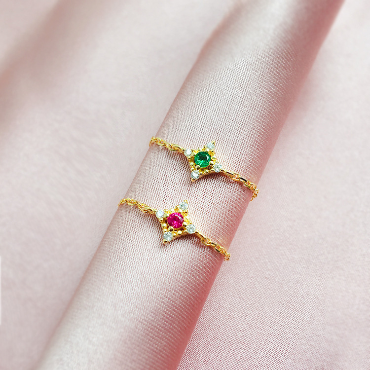 Material: SilverStyle: Japanese and KoreanMosaic material: otherColor: green diamond chain ring, red diamond chain ring